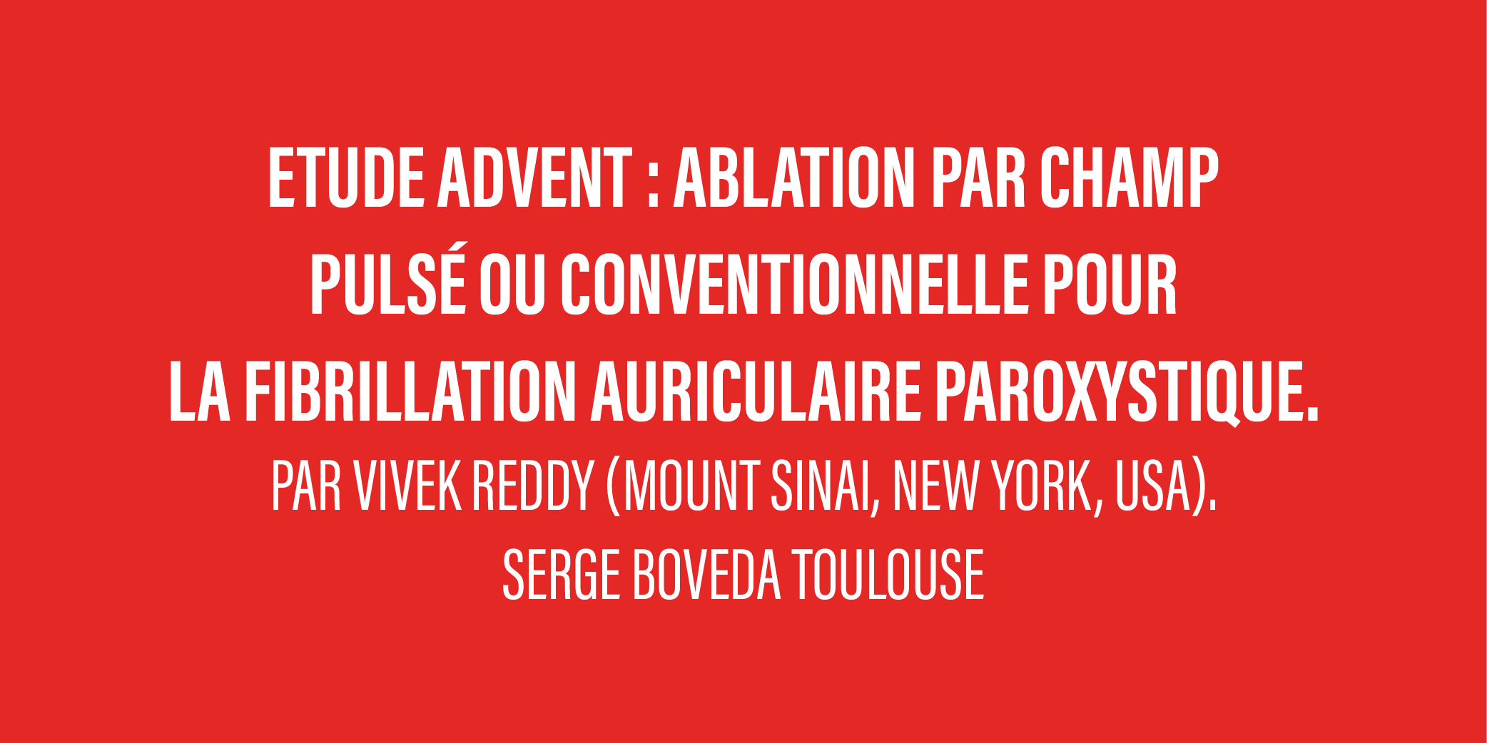 Etude ADVENT : Ablation par champ pulsé ou conventionnelle pour la fibrillation auriculaire paroxystique.