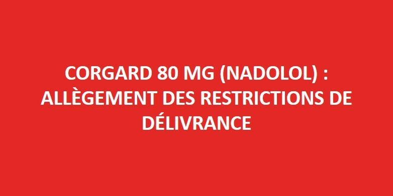 À compter du 19 janvier 2024, au vu des stocks actuels, la délivrance n’est plus limitée à ces indications. Corgard peut désormais aussi être prescrit et dispensé pour prévenir tous les troubles du rythme ventriculaire. Le maintien du traitement alternatif dans les autres indications reste recommandé tant que des tensions d’approvisionnement en Corgard persistent. Cette situation devrait perdurer jusqu’au mois de mars, période où le niveau des approvisionnements doit redevenir normal.